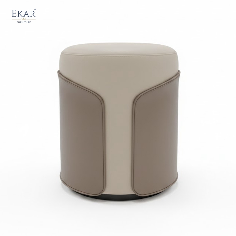 The Aura Modern Silhouette Vanity Stool by EKAR FURNITURE is a masterwork of minimalist design, specifically engineered to bring a sense of sculptural poise to the contemporary dressing area. Moving away from traditional utilitarian seating, this vanity stool features a striking dual-tone aesthetic with a wrap-around outer shell that provides both visual depth and physical support. The continuous, flowing lines create a seamless profile that anchors the space, making it an essential component of a high-end bedroom furniture suite. Designed for the modern visionary, the Aura stool is not merely an accessory but a statement piece that balances soft textures with an architectural presence, ideal for upscale residential projects and boutique hospitality interiors.