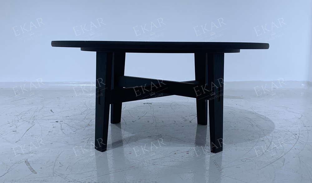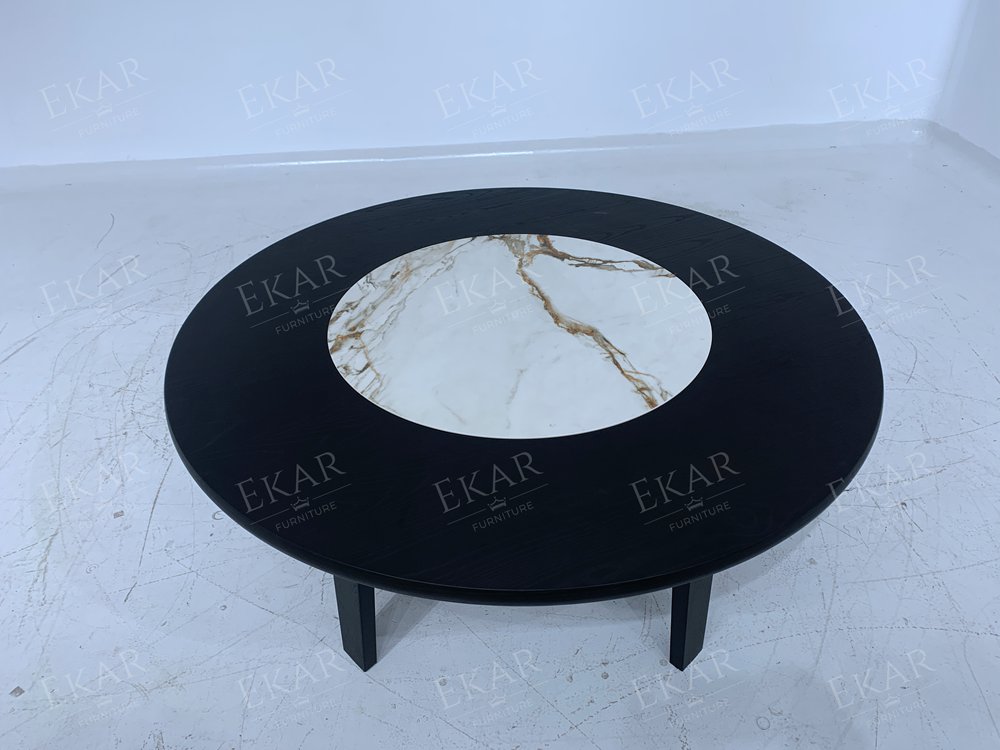 The construction of the base reflects the structural depth and artisanal soul of our China furniture factory. Utilizing reinforced solid ash wood or walnut, the cross-base design provides absolute stability for the heavy stone surface while maintaining a visually light, contemporary silhouette. The internal rotating mechanism is engineered for silent, smooth motion, utilizing industrial-grade bearings that require zero maintenance. This blend of heavy-duty durability and refined aesthetic is why EKAR FURNITURE is a preferred partner for five-star hotel restaurants and executive villa projects in Singapore, Bangkok, and Ho Chi Minh City.