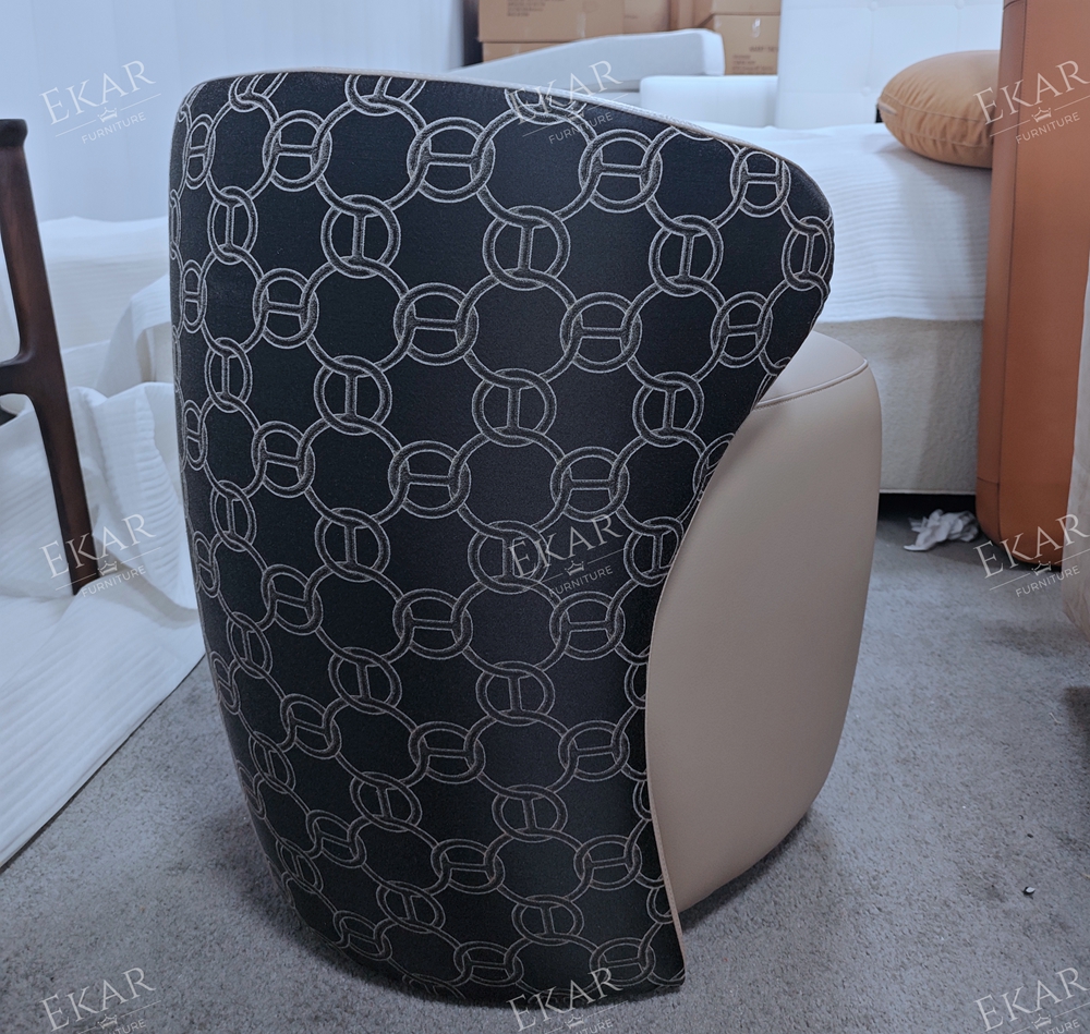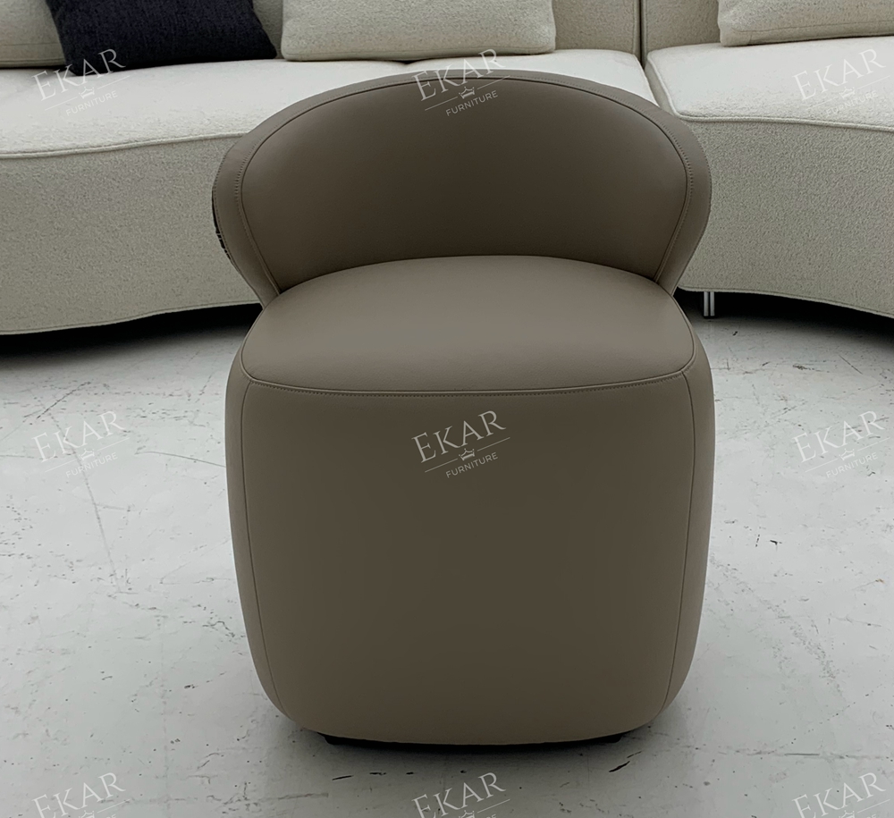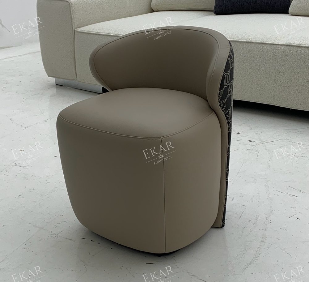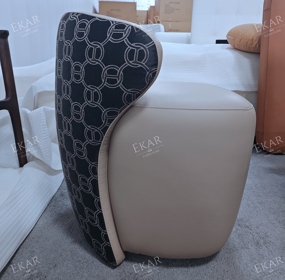 The Valeria Modern Luxury Vanity Stool by EKAR FURNITURE is a definitive statement of contemporary elegance, designed to anchor the high-end master suite with architectural poise and deep-seated comfort. This vanity stool features a striking, sculptural silhouette that contrasts a smooth, supple leather seat with a bold, patterned textile wrap. The low-profile backrest curves gracefully to provide just the right amount of support, while the weighted, monolithic base ensures stability. As a centerpiece of our bedroom furniture collection, the Valeria is engineered for those who demand a seating solution that functions as a work of art, providing a sophisticated backdrop for morning rituals and evening preparation in modern luxury residences.