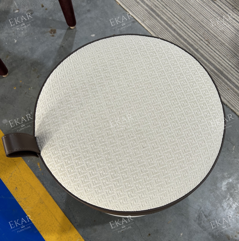 While it is undeniably stylish, the Veda is built for comfort. The seat cushion features high-density foam that provides firm yet yielding support. It is designed to hold its shape over time, ensuring that the ottoman remains a pristine part of your decor for years. The weight of the metal base ensures stability, preventing the stool from tipping or sliding during use.