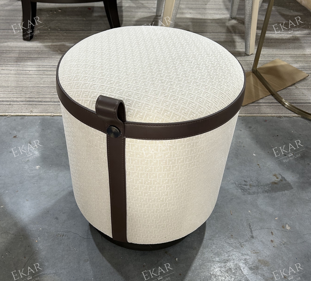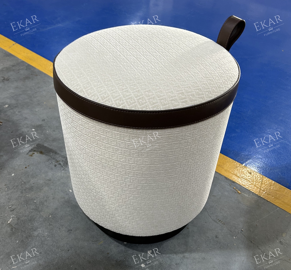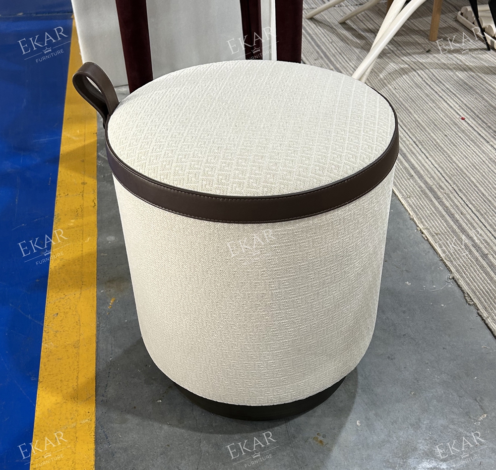 Rising from this sturdy base is the seat, a plush volume of comfort. Whether upholstered in a rich, jewel-toned velvet that invites touch or a sleek, high-grade leather for a more masculine look, the fabric creates a soft counterpoint to the metal below. The silhouette is clean and cylindrical, devoid of unnecessary ornamentation, allowing the quality of the materials to speak for themselves. The transition between the metal and the fabric is seamless, showcasing the meticulous craftsmanship that defines the EKAR brand.